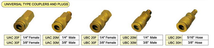 We supply varial type brass pneumatic couplers, including milton type couplers and plugs, Tru-flate couplers and plugs, ARO type couplers and plugs, Universal type couplers and plugs, ORION types couplers and plugs, etc. Every type has the femal thread couplers and plugs, male thread couplers and plugs, tubing couplers and plugs, and they’re exchangeable to each other, so that one series can meet many different connection needs. The milton type couplers and plugs, Tru-flate couplers and plugs, ARO type couplers and plugs, Universal type couplers and plugs are most popular in USA, and ORION type couplers and plugs are popular in Europe.