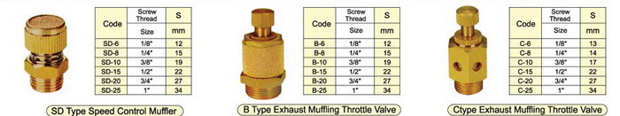 Mufflers (silencers) are widely used on valves, cylinders, or any pneumatic systems need a silencer to clean the exhaust air and reduce down the noise and some can adjust the flow rate. We manufacture different kind of mufflers for different conditions. The brass mufflers are most widely used, while plastic mufflers and stainless steel silencers are used in more special conditions. Our mufflers are normally from 1/8” to 1”, but some types has bigger size from M5 to 2”. We also manufacture very special mufflers according to customers requirement, for any of these special mufflers, just contact us immediately so that we can develop the exact mufflers as you want.
