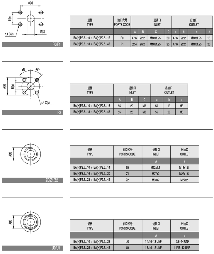 BHP2.5A2-D-40 | 40 | 190 | 200 | 210 | 2500 | 400 | 148 | 71.6 | 1 5/16-12UNF | 1 1/16-12UNF |