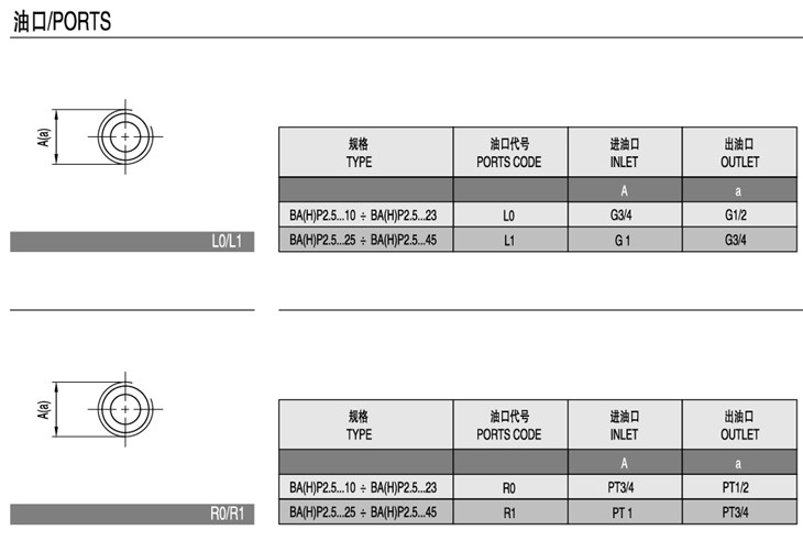 BHP2.5A2-D-30 | 30 | 250 | 265 | 280 | 3000 | 400 | 135 | 65.6 | 1 5/16-12UNF | 1 1/16-12UNF |