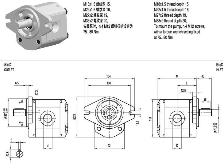 BHP2.5A2-D-20 | 20 | 280 | 290 | 300 | 3000 | 500 | 123 | 59.6 | 1 1/16-12UNF | 7/8-14UNF |